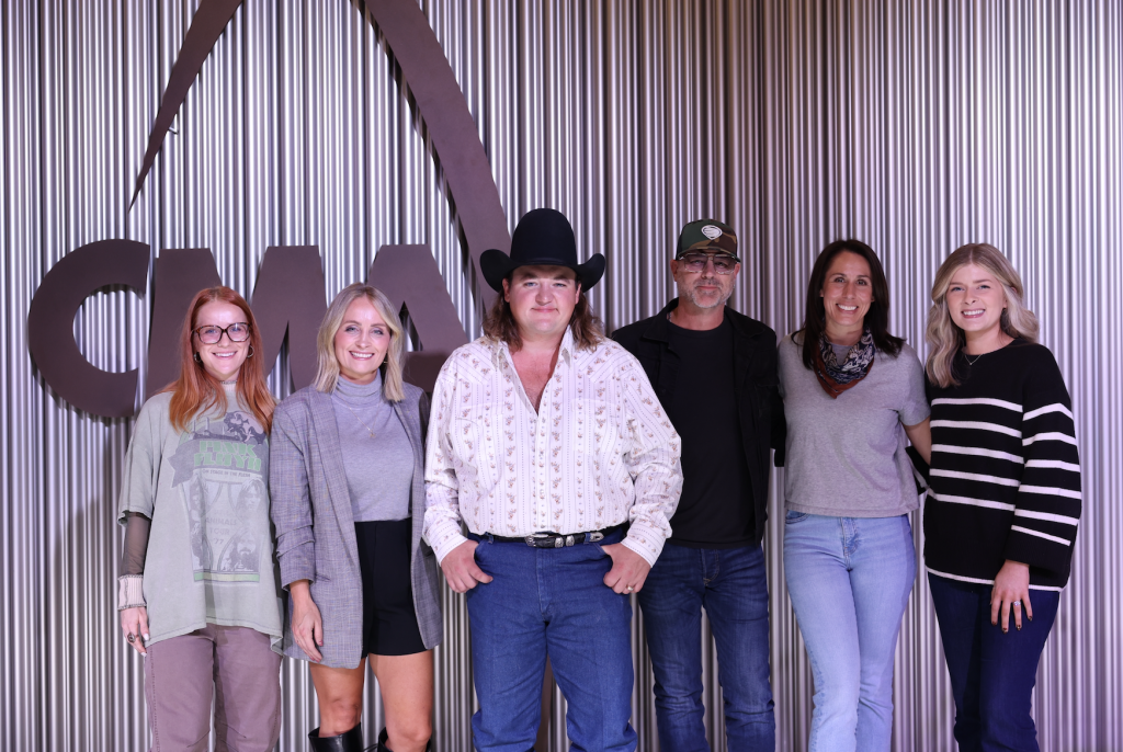 PHOTO ID (L-R) Emily Smith (TRACK Mgmt Artist Manager), Tiffany Kerns (CMA Senior Vice President, Industry Relations and Philanthropy), Jake Worthington, Jon Randall (Big Loud Texas, President of A&R), Stephanie Shank (CMA Senior Manager, Talent and Industry Relations) and Kate Watson (CMA Senior Director, Industry Relations) during Worthington’s visit to CMA HQ in Nashville on Wednesday, Oct. 15. | Image by Emily April Allen | Download here