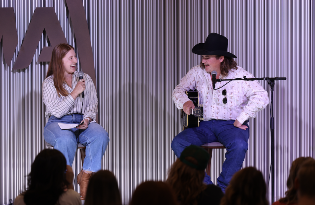 Jake Worthington participates in a Q&A with Madi White (CMA Manager, Integrated Marketing) to kick off his visit to CMA HQ in Nashville on Wednesday, Oct. 15. | Image by Emily April Allen | Download here